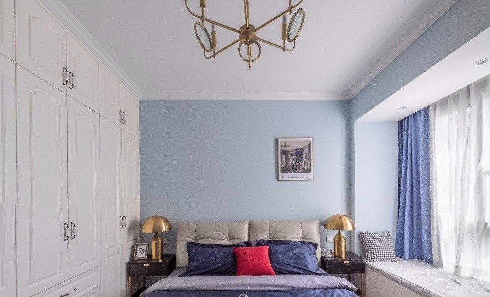 為了讓臥室不那么呆板,選擇了一副古典裝飾畫(huà),用不對(duì)稱的方式打破空間的平衡感,從而使空間更有戲劇性。。